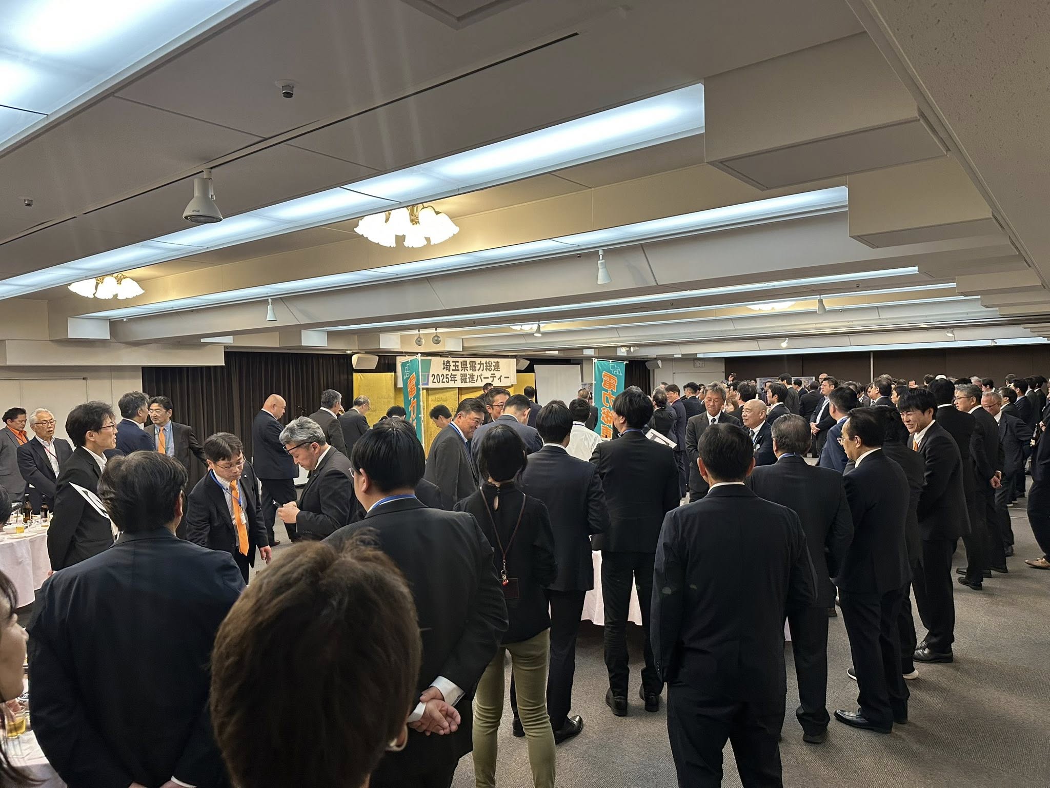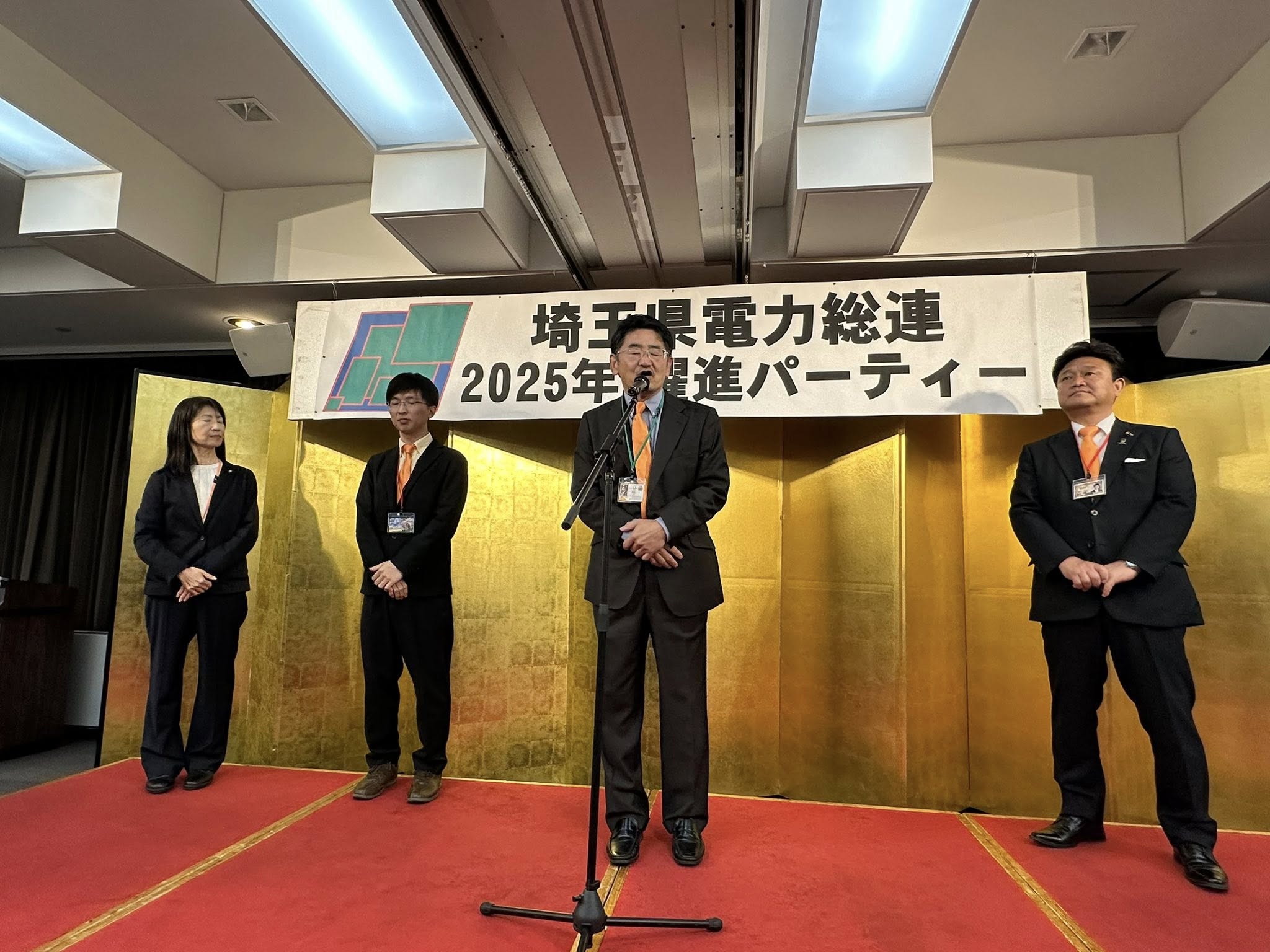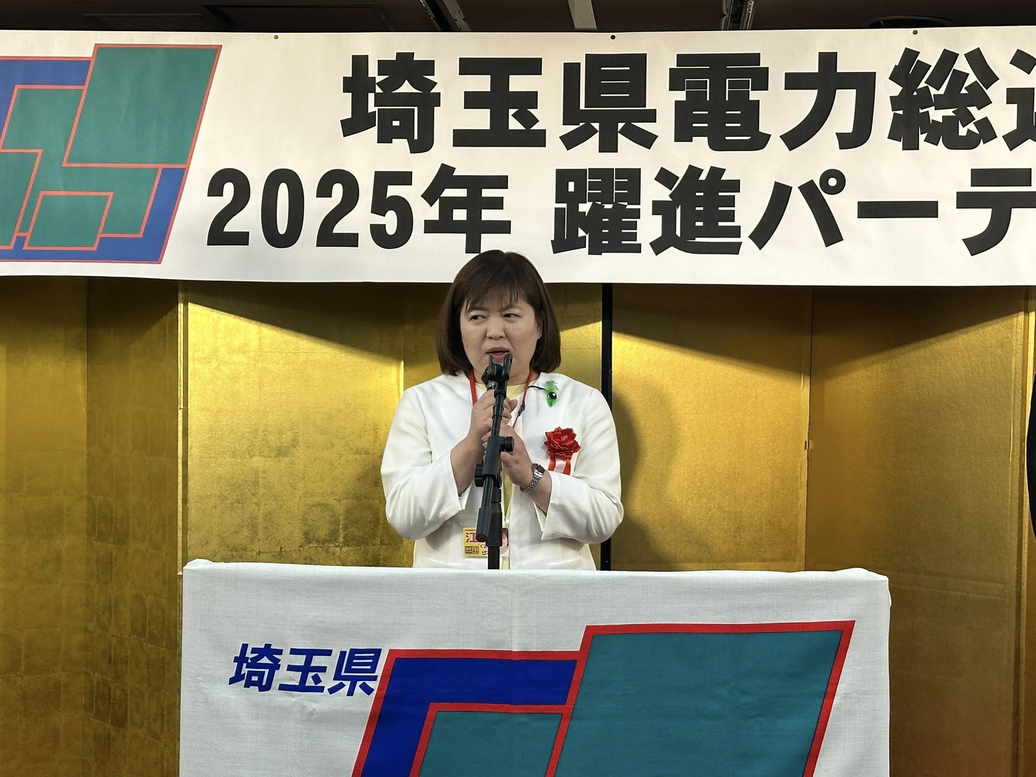 国政報告会の後は同会場において埼玉県電力総連2025年躍進パーティーが開催され、私も出席させていただきました。国民民主党埼玉県連所属の国会議員、自治体議員をはじめ同県連の推薦議員、連合埼玉の仲間の皆さま、電力関連産業労使の代表者など150名を超える方々が集まり、今夏の参議院選挙にむけて比例代表は浜野よしふみ議員、埼玉選挙区では江原くみこ氏の必勝を誓い合いました。