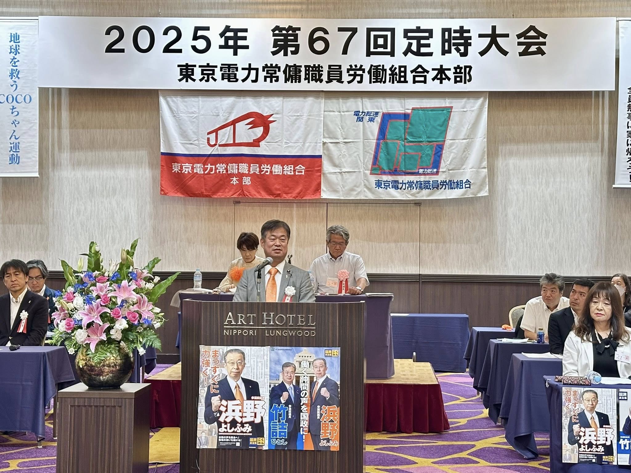 大会 電力総連 2025/06/16 四国電力総連、日本原電労組、東電常傭職員労組 大会で挨拶 2025年6月13日(金)、四国電力総連大会にwebで挨拶させていただきました。また、翌6月14日(土)は、日本原電労組大会(@AP秋葉原)、東京電力常傭職員労組大会(@アートホテル日暮里ラングウッド)で挨拶をさせていただきました。日頃のご支援に対する感謝を申し上げ、今国会での活動、電力関連産業で働く仲間にも関連する法案審議などお話させていただきました。引き続き、浜野よしふみ議員とともに職場で働く仲間の声を国会に届け続けることをお約束しました。 « 前の記事へ 次の記事へ »