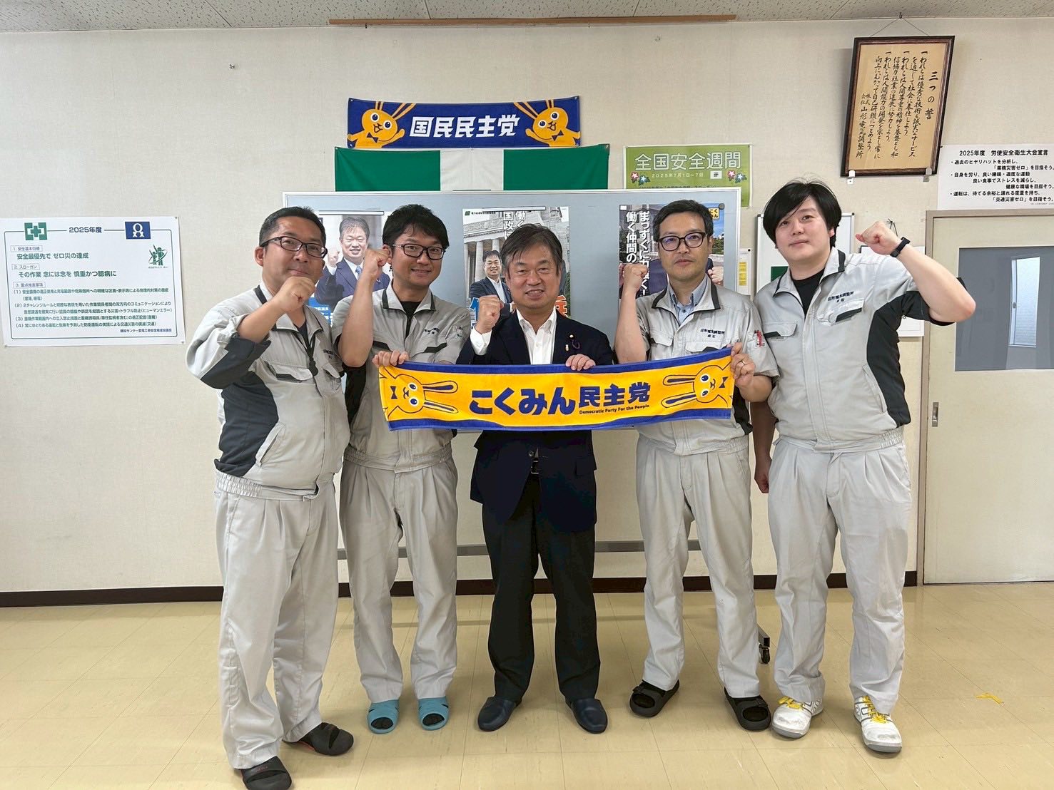 電力の安定供給、電気工事、通信工事、電気保安を担っていただいている皆さんに心より敬意を表します。引き続き、職場の課題、働く人の声を 浜野よしふみ 議員とともに国政に届けることをお約束しました。