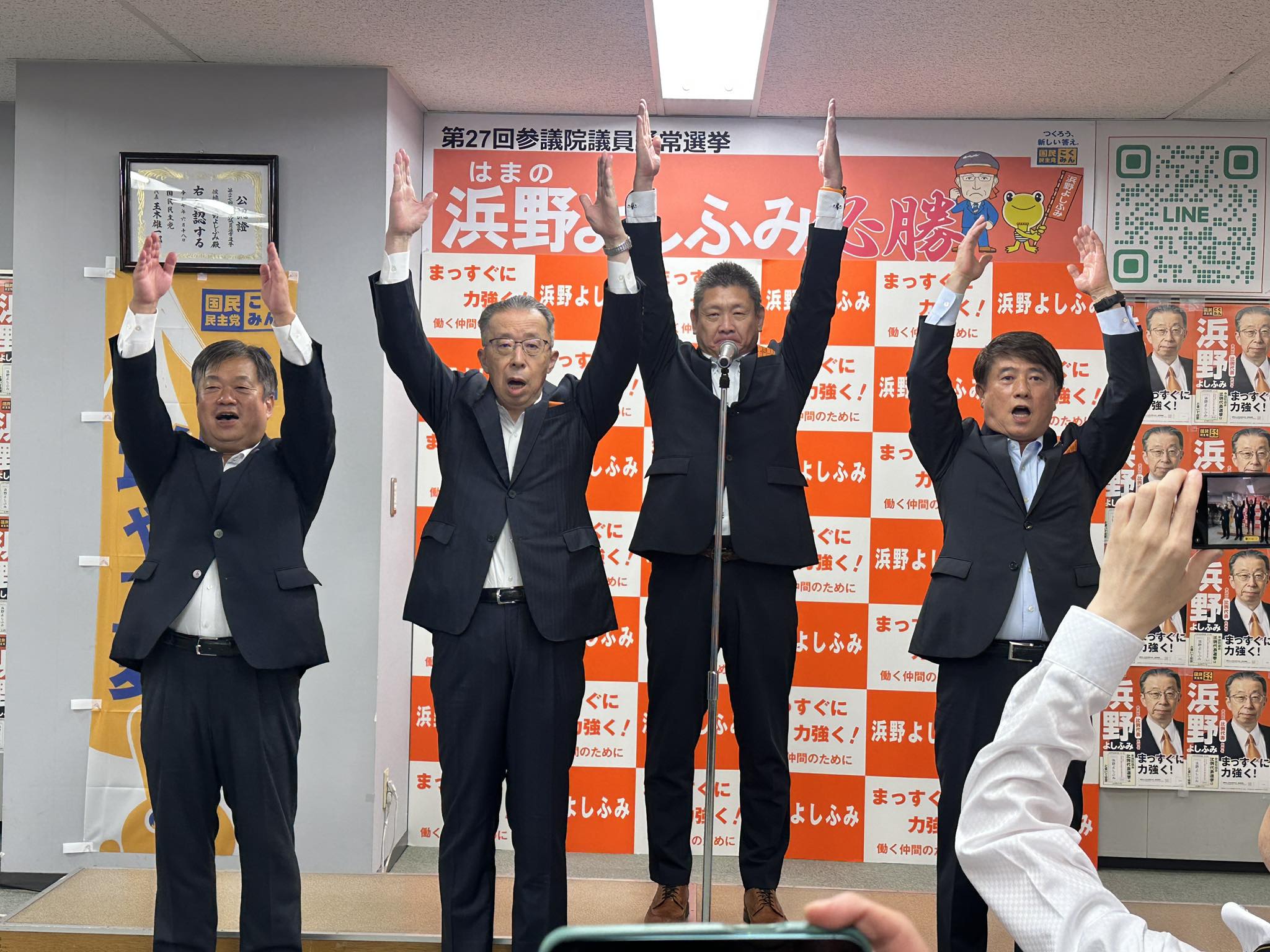 浜野よしふみさんは『ゼロ打ち』、投票が締め切られた午後8時に当選確実が報じられました。