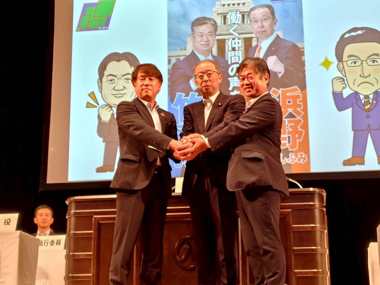 大会では浜野よしふみ議員の祝勝セレモニーが行われたほか連合の芳野友子会長、大村愛知県知事、広沢名古屋市長、電力総連が主催する「明日の環境とエネルギーを考える会」会長の立憲民主党大島敦衆議院議員、そして国民民主党玉木雄一郎代表にもご挨拶いただきました。ありがとうございました。