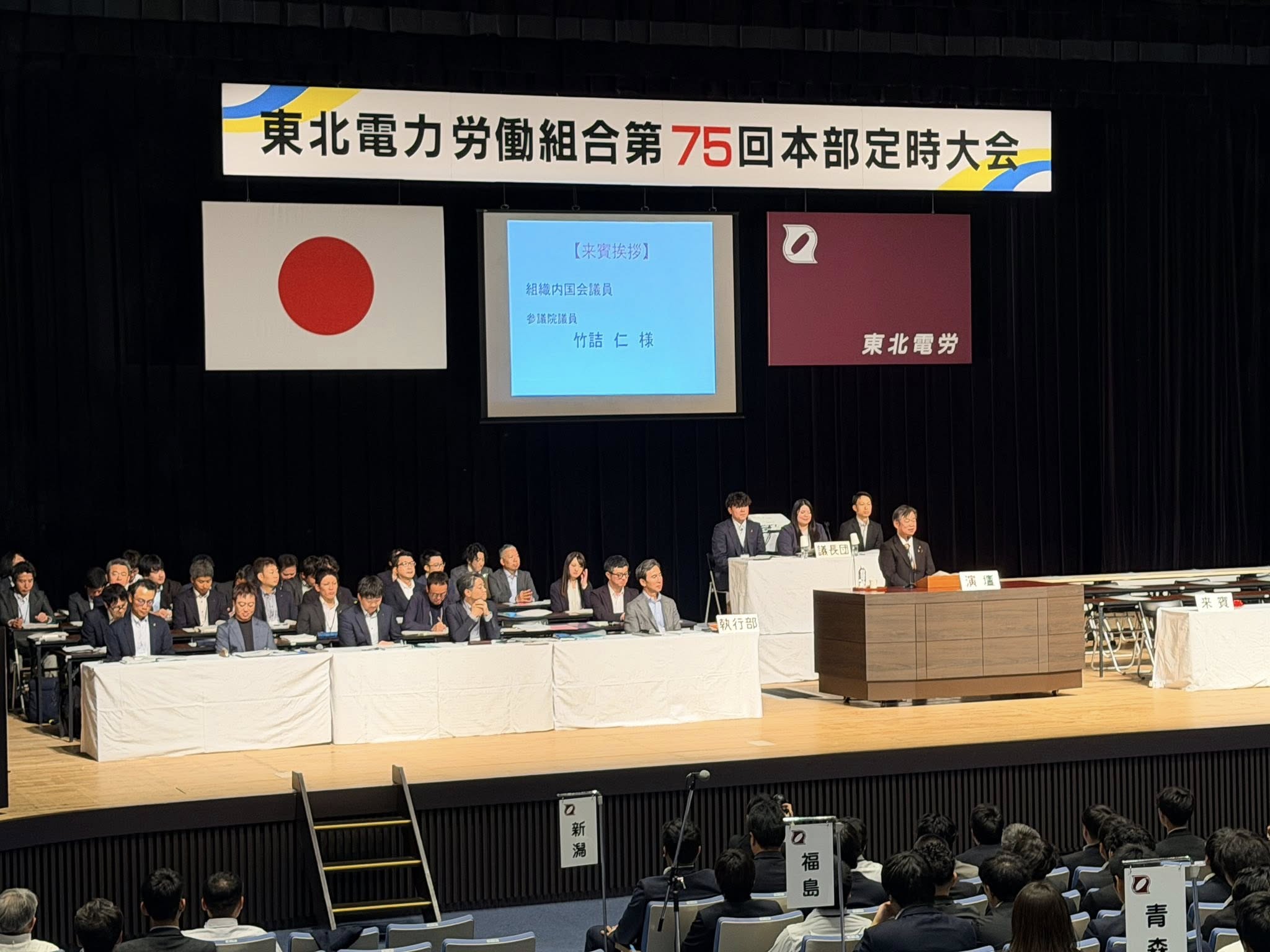 2025年10月15日(水)、東北電力労働組合第75回定時大会(@仙台・電力ホール)で挨拶をさせていただきました。東北地方では本年も豪雨災害が発生し、東北電力グループの皆さまが各被災地で懸命に電力の早期復旧作業にあたってくださいました。
